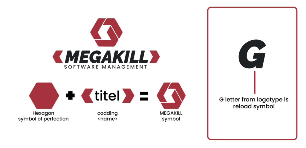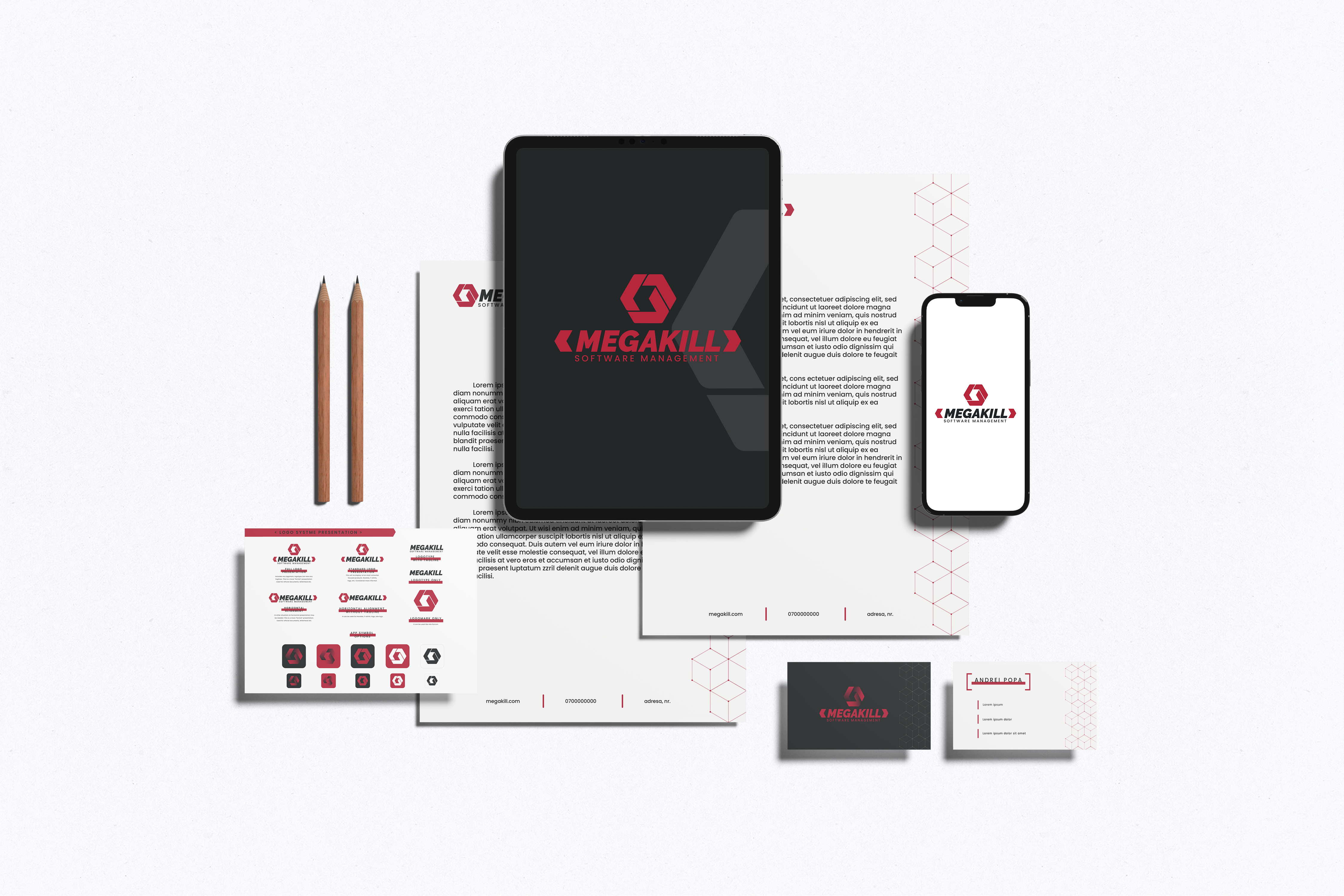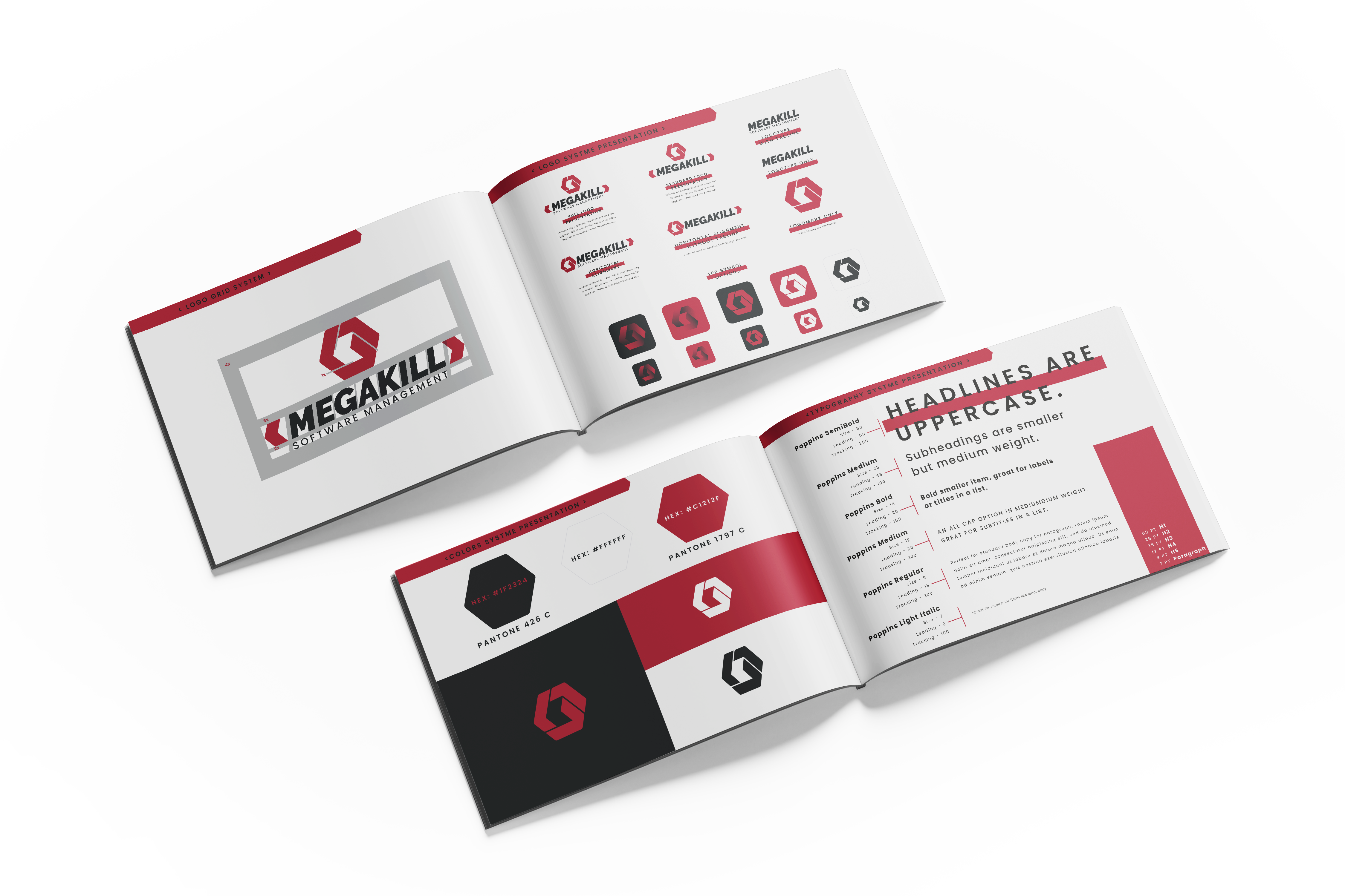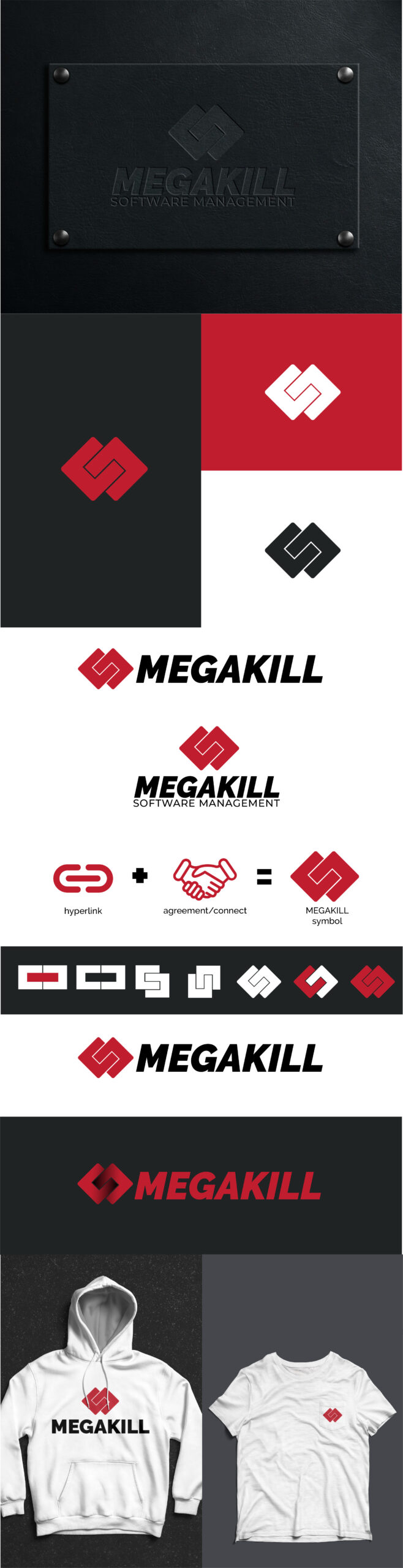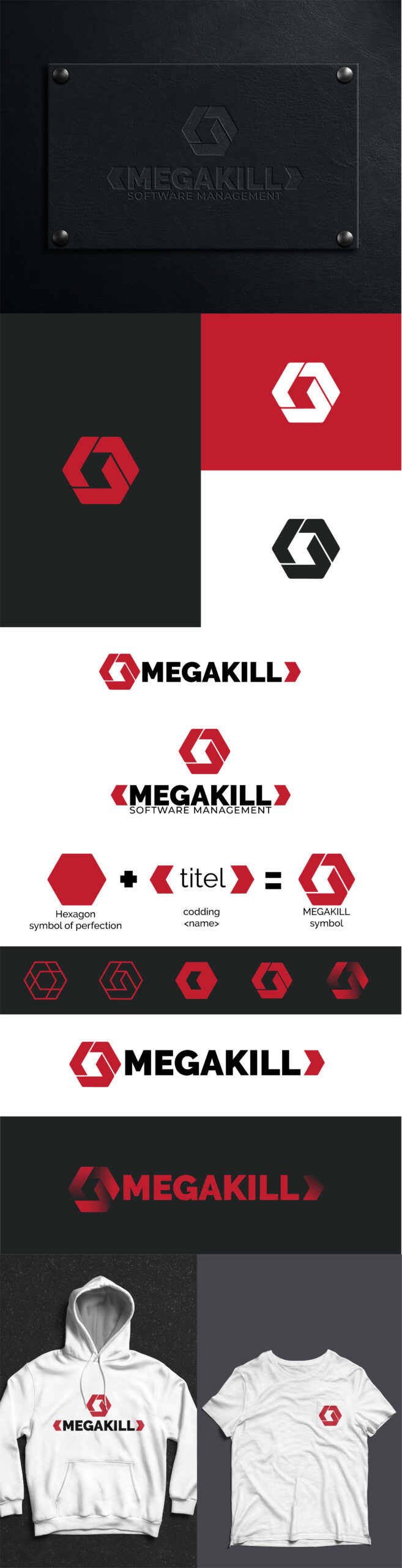 In developing the branding for Megakill, I decided to incorporate a color palette featuring red, white, and dark gray because red symbolizes power, passion, and energy, while white signifies purity, clarity, and professionalism. Dark gray adds a touch of sophistication and stability to the palette, reflecting Megakill’s commitment to reliability and precision in delivering software solutions. The bold and bald logo design exudes strength and stability, evoking a sense of confidence and trust in Megakill’s capabilities. The use of angled brackets (< >) in the logo, with the company name enclosed within, conveys the idea of code and programming, emphasizing Megakill’s expertise in software development. This cohesive branding approach communicates Megakill’s commitment to empowering businesses with powerful, innovative, and reliable software solutions.